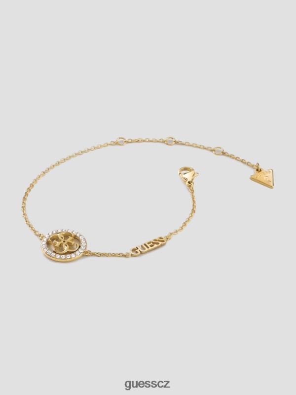 - Jemný zlatý tónový řetězový náramek s quattro g logo mince kouzla s akcenty krychlového zirkonu