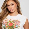 GUESS Boty – GUESS Ekologický trojúhelník Bling Ribbed Tank Plná květina růžová ženy 2BRD1049 oblečení