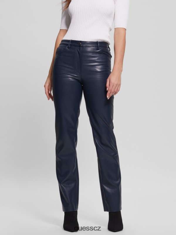 GUESS Boty – GUESS Kelly Faux-theather rovné kalhoty zčernalé modré ženy 2BRD2294 oblečení