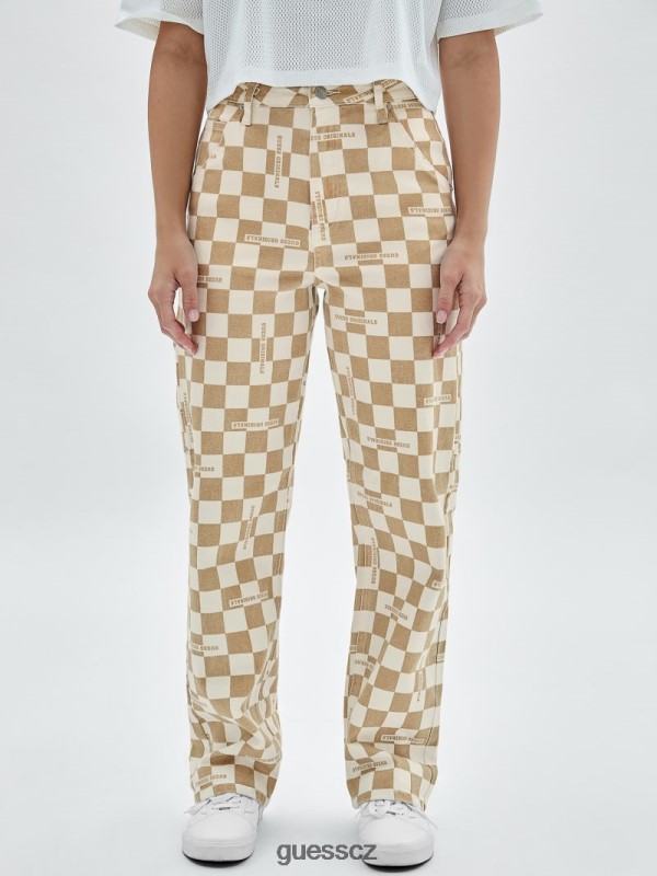 GUESS Boty – GUESS originály kostkované tesařské džíny bledý béžový nahý ženy 2BRD227 oblečení