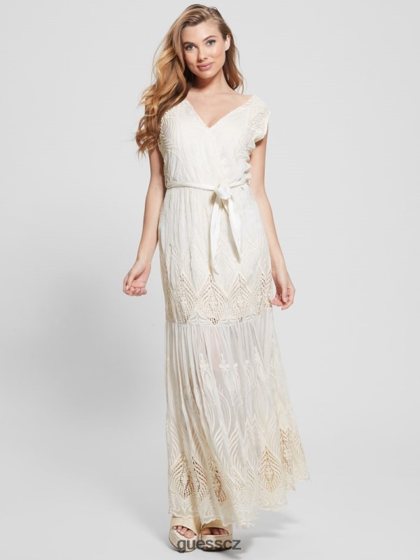 GUESS Boty – GUESS Pam vyšívané dlouhé šaty krémová bílá ženy 2BRD572 oblečení