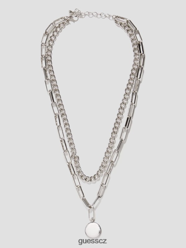 - Vrstvený náhrdelník stříbrný tóny s obrubníkem řetězu a řetězem papírových sponek s přívěskem solidních mincí