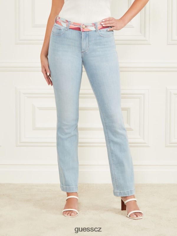 GUESS Boty – GUESS tištěné pasy hubené džínové kalhoty Světle modré promytí ženy 2BRD113 oblečení