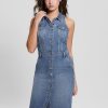 GUESS Czarna Torebka – GUESS Caroline Belted šaty Modrý džínovina ženy 2BRD33 oblečení