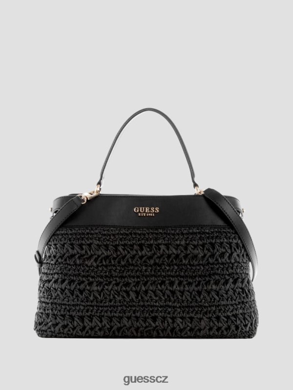 GUESS Czarna Torebka – GUESS Liguria Crochet Straw Satchel Černý květinový tisk ženy 2BRD2904 tašky
