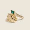 - Zlato-tónový prsten s kompozicí řetězu a velkého drahokamu zdobeného loga