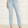 GUESS Boty – GUESS tištěné pasy hubené džínové kalhoty Světle modré promytí ženy 2BRD113 oblečení
