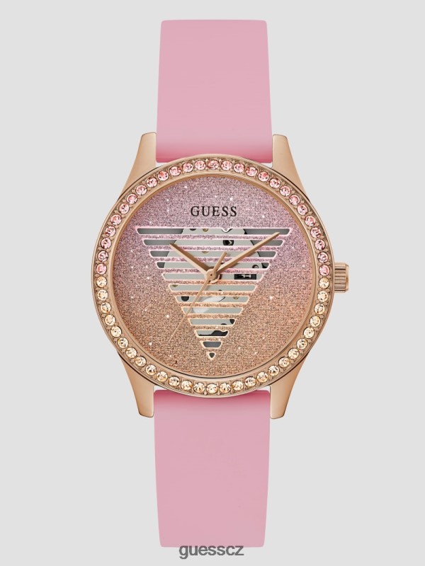 GUESS Czarna Torebka – GUESS třpytky viditelní logo silikonové analogové hodinky růžové zlato ženy 2BRD3636 příslušenství