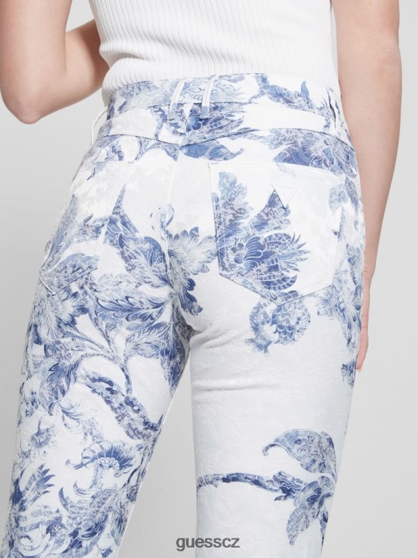 GUESS Czech Republic – GUESS 1981 Květinové středopočtové rovné tkané kalhoty Porcelánová květina ženy 2BRD64 oblečení