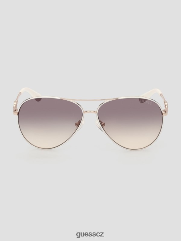 GUESS Czech Republic – GUESS Čtvercové G Link Metal Aviator Sluneční brýle bílý ženy 2BRD3649 příslušenství