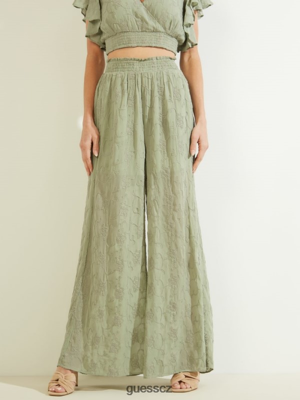 GUESS Czech Republic – GUESS dexie vyšívané kalhoty palazzo Světlo Matcha multi ženy 2BRD2197 oblečení