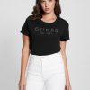 GUESS Czech Republic – GUESS Hvězdy drahokamové logo Tee Acid Jet Black ženy 2BRD994 oblečení