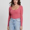 GUESS Czech Republic – GUESS Eco Off-the-Shoulder Lucy Top Nordic Sea Kašmír ženy 2BRD1075 oblečení