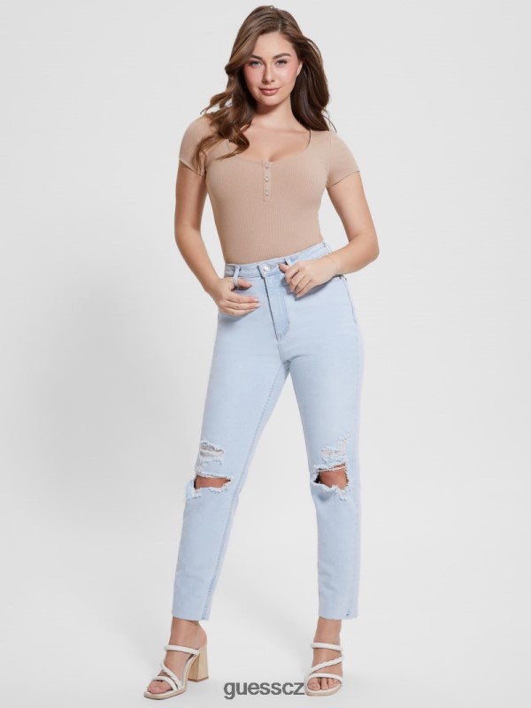 GUESS Czech Republic – GUESS Eco zničila džíny mámy Brightstone Blue ženy 2BRD19 oblečení