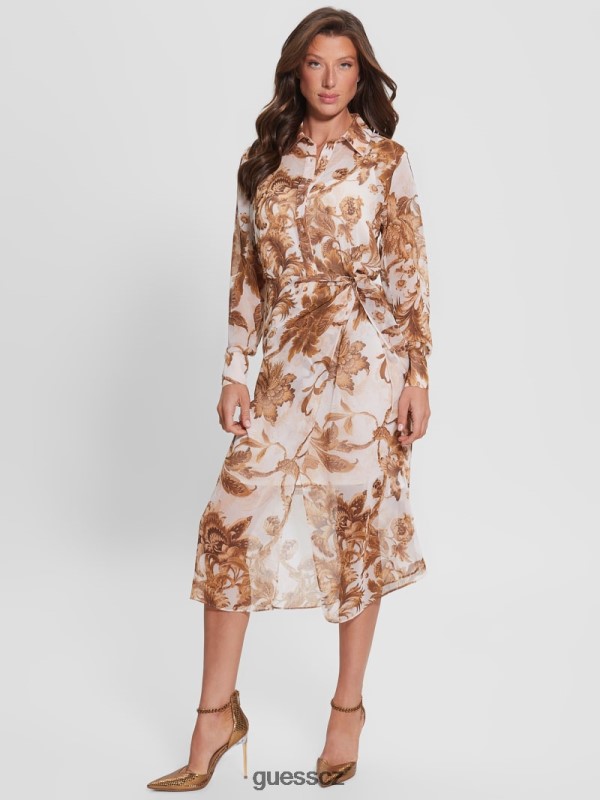 GUESS Czech Republic – GUESS Ekologické tištěné šaty porcelánový květinový tisk Br ženy 2BRD832 oblečení