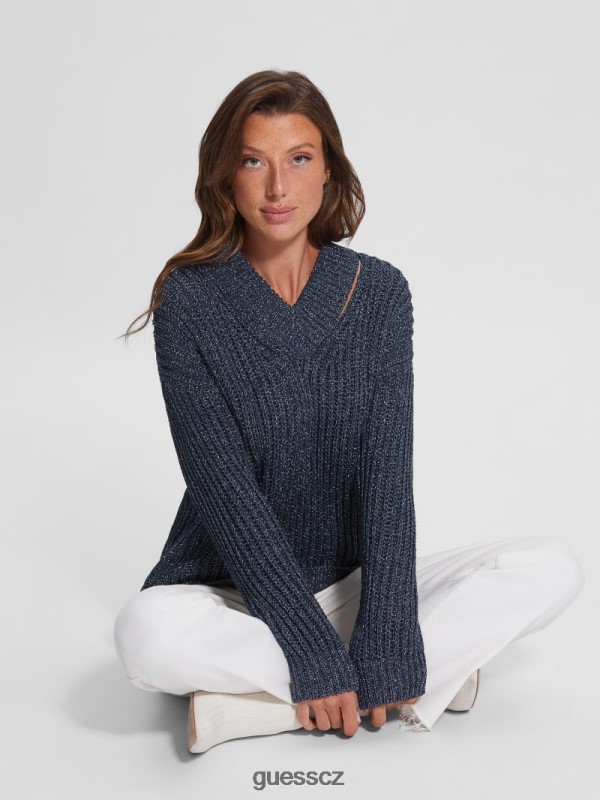 GUESS Czech Republic – GUESS Lise výřezový svetr zčernalé modré Lurex ženy 2BRD1597 oblečení