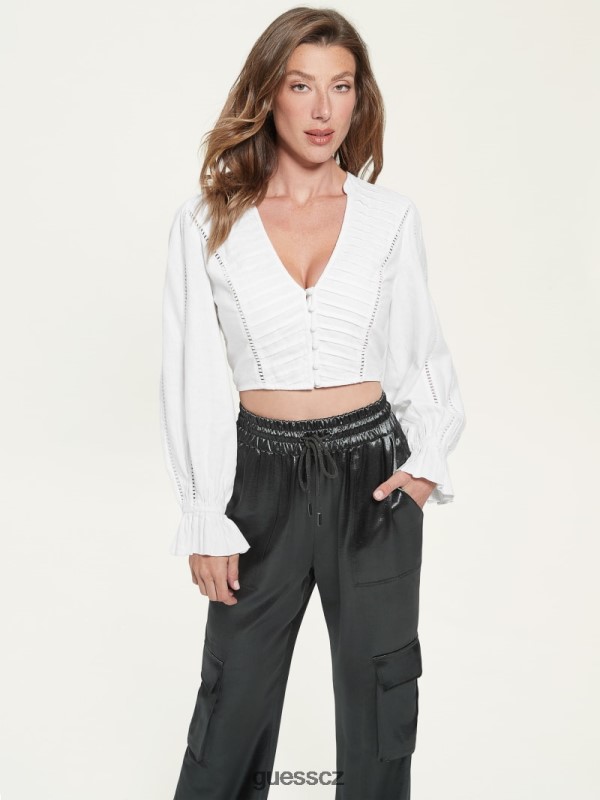 GUESS Czech Republic – GUESS Louse Rhea Linen čistá bílá ženy 2BRD1417 oblečení