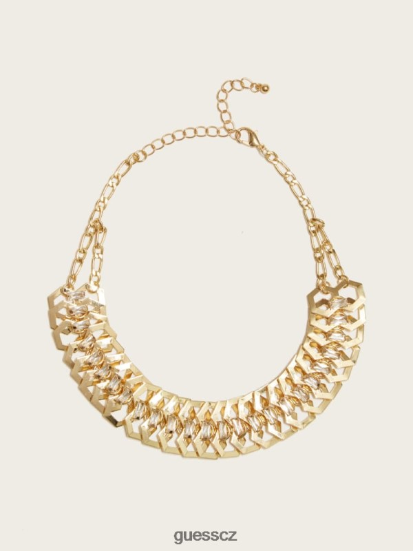 - Náhrdelník zlatého tónu s duálním hexagonálním designem řetězu s krystaly kubické zirkony na středu