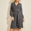 GUESS Czarna Torebka – GUESS Caroline Belted šaty Modrý džínovina ženy 2BRD33 oblečení