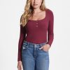 GUESS Czech Republic – GUESS Eco Off-the-Shoulder Lucy Top Nordic Sea Kašmír ženy 2BRD1075 oblečení