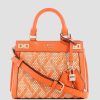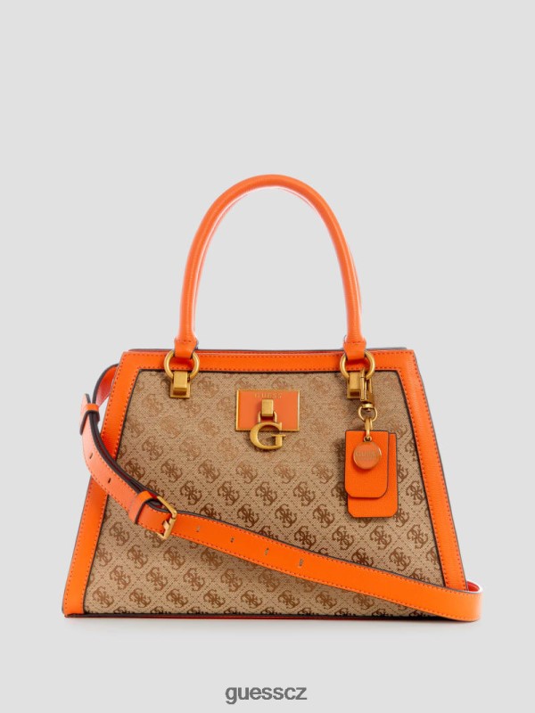 GUESS Czech Republic – GUESS Stephi Jacquard Logo přítelkyně Satchel Latte logo/oranžová ženy 2BRD2980 tašky