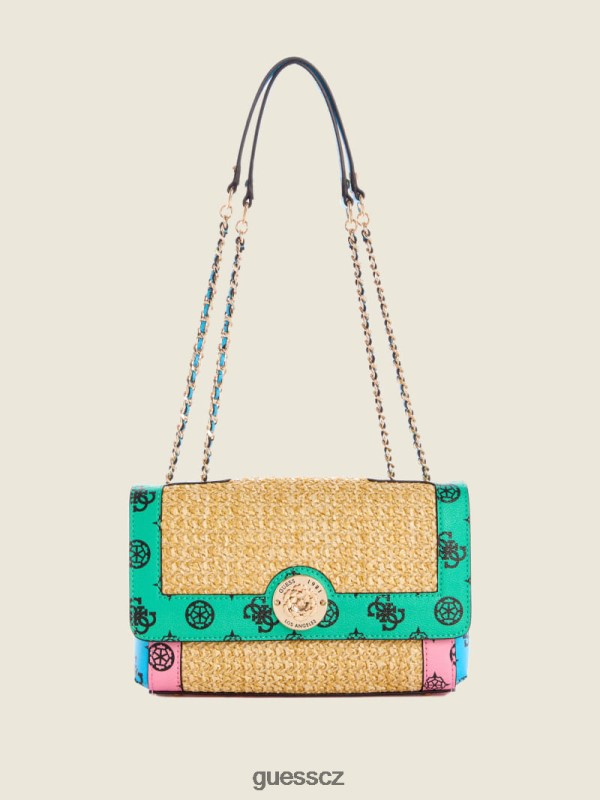 GUESS Czech Republic – GUESS Vždy raffia logo kabriolet crossbody Green Tropics Multi ženy 2BRD2992 tašky