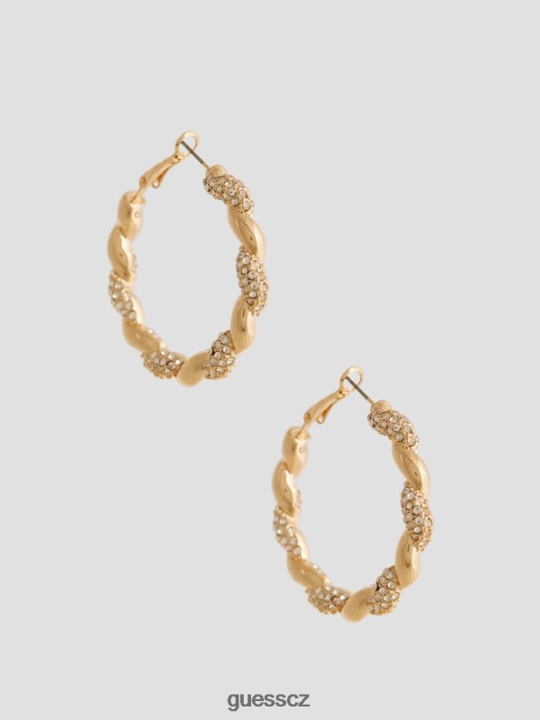 - Dvojice náušnic zlatých tónů s krouceným designem a zdobením drahokamu určitě vás budou zářivé po celý večer