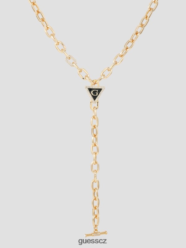 - Náhrdelník s řetězem zlatého tónu navržený v siluetě Y s černým smaltem G Accent ve středu
