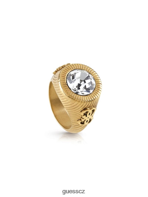 - Odvážný povrch vašeho vzhledu, tento tlustý zlatý tónový prsten má žebrovaný design, kulatý krystalový střed a duální signata quattro g po stranách.