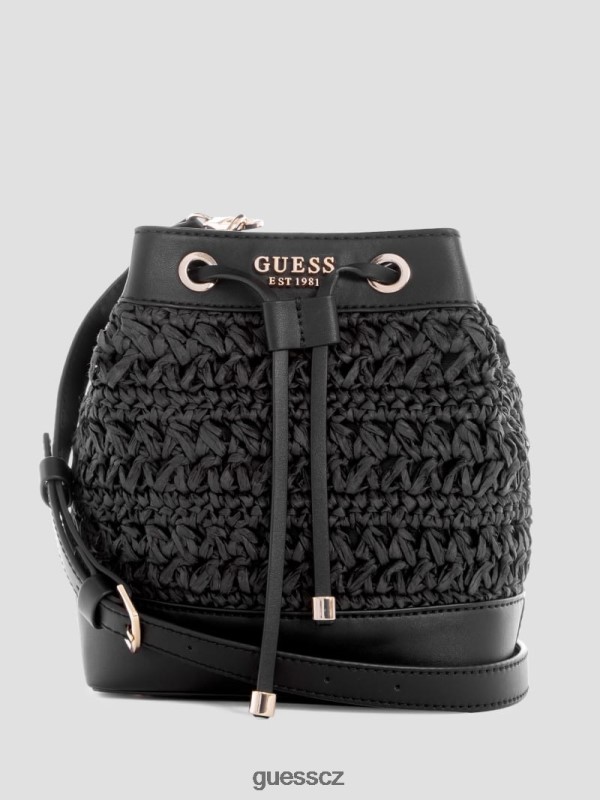 GUESS Boty – GUESS Liguria háčkování slámy kbelíku Černý květinový tisk ženy 2BRD2936 tašky